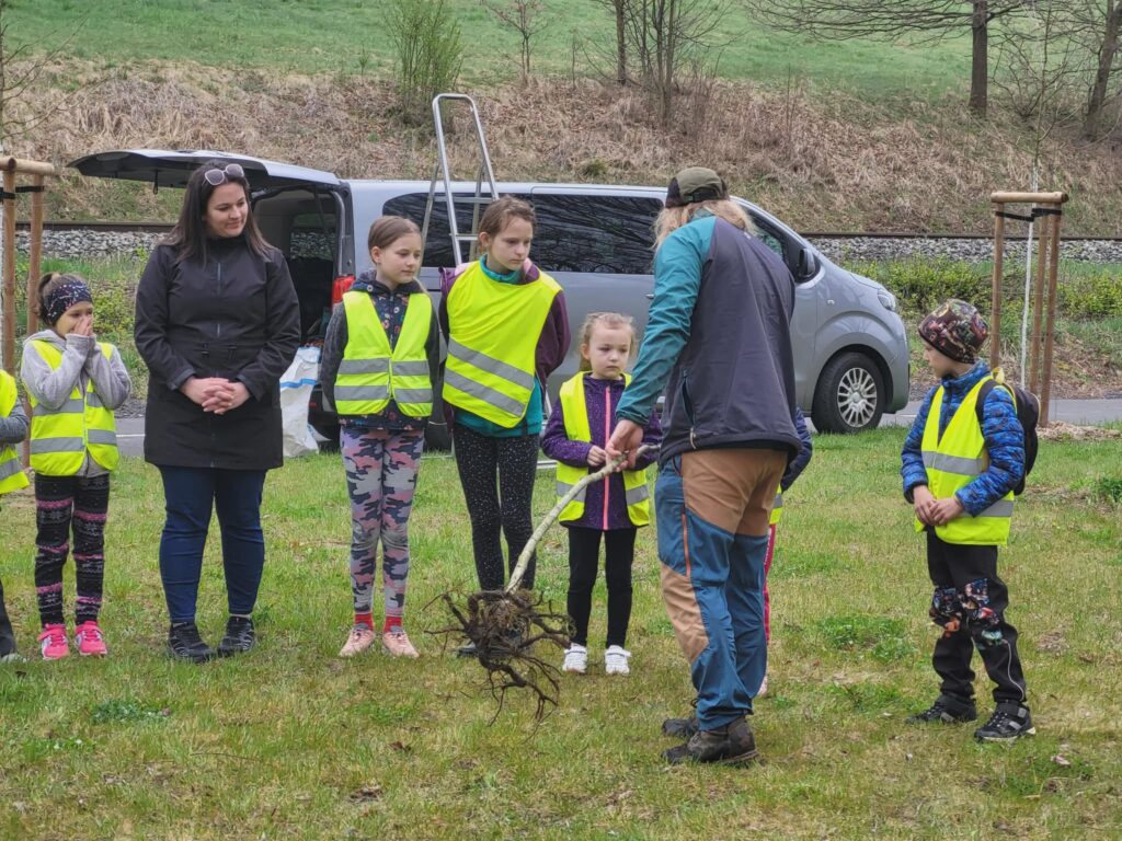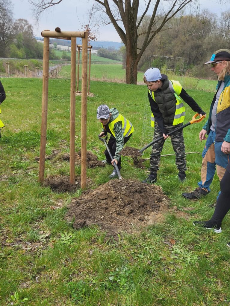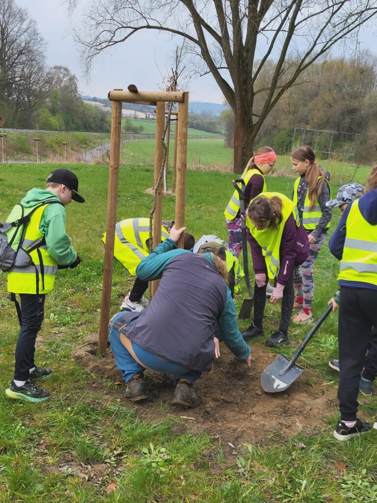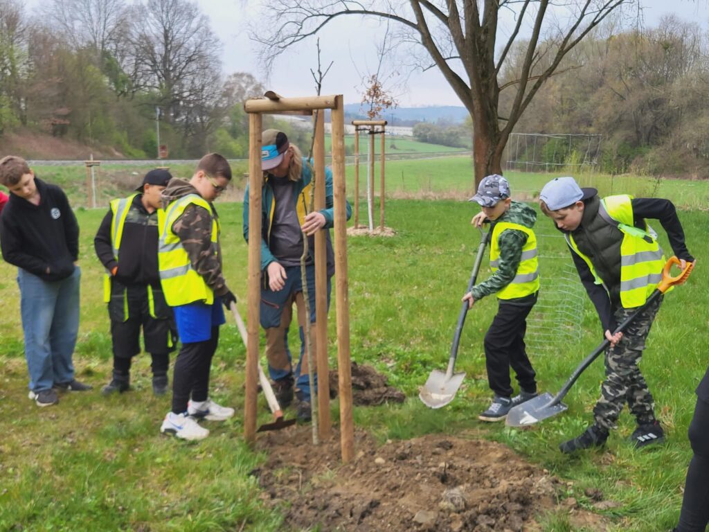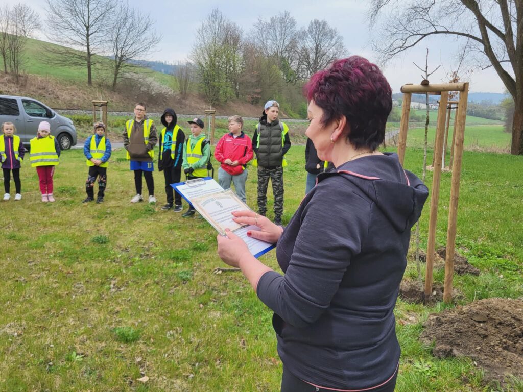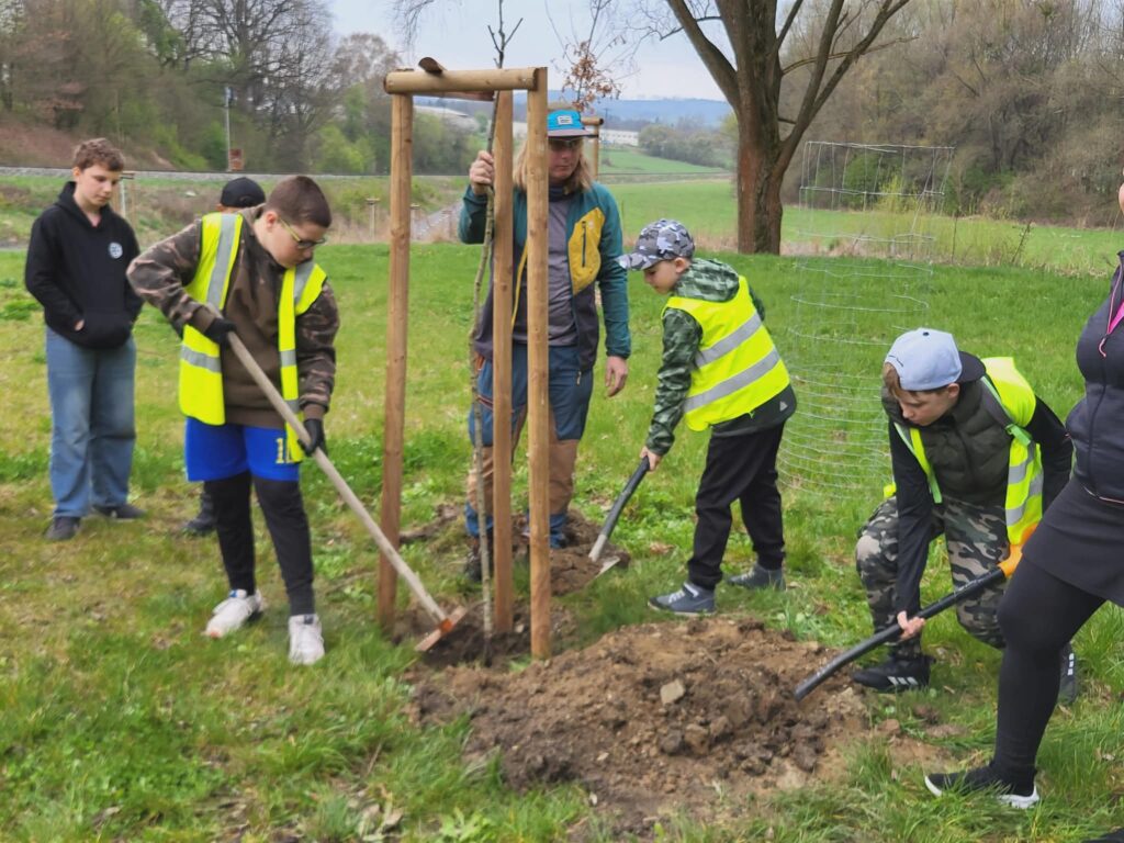Dnes jsme u cyklistické stezky vysadili strom – třešeň, která se stane naším pohádkovým stromem. K ní budeme vzhlížet a kontrolovat, jak roste, pod ní si budeme číst pohádky a příběhy. Akci zorganizovala paní vychovatelka Dagmar Horáková ze školní družiny a moc se nám líbila. Těšíme se na první příběhy i první plody tohoto stromu.
