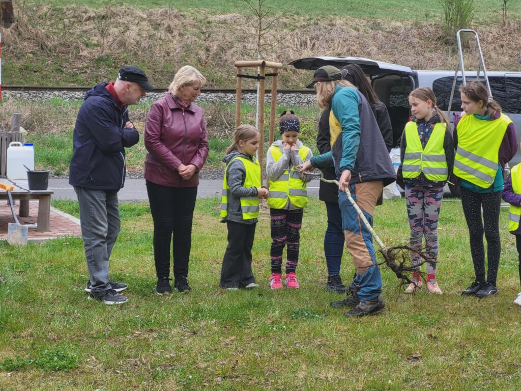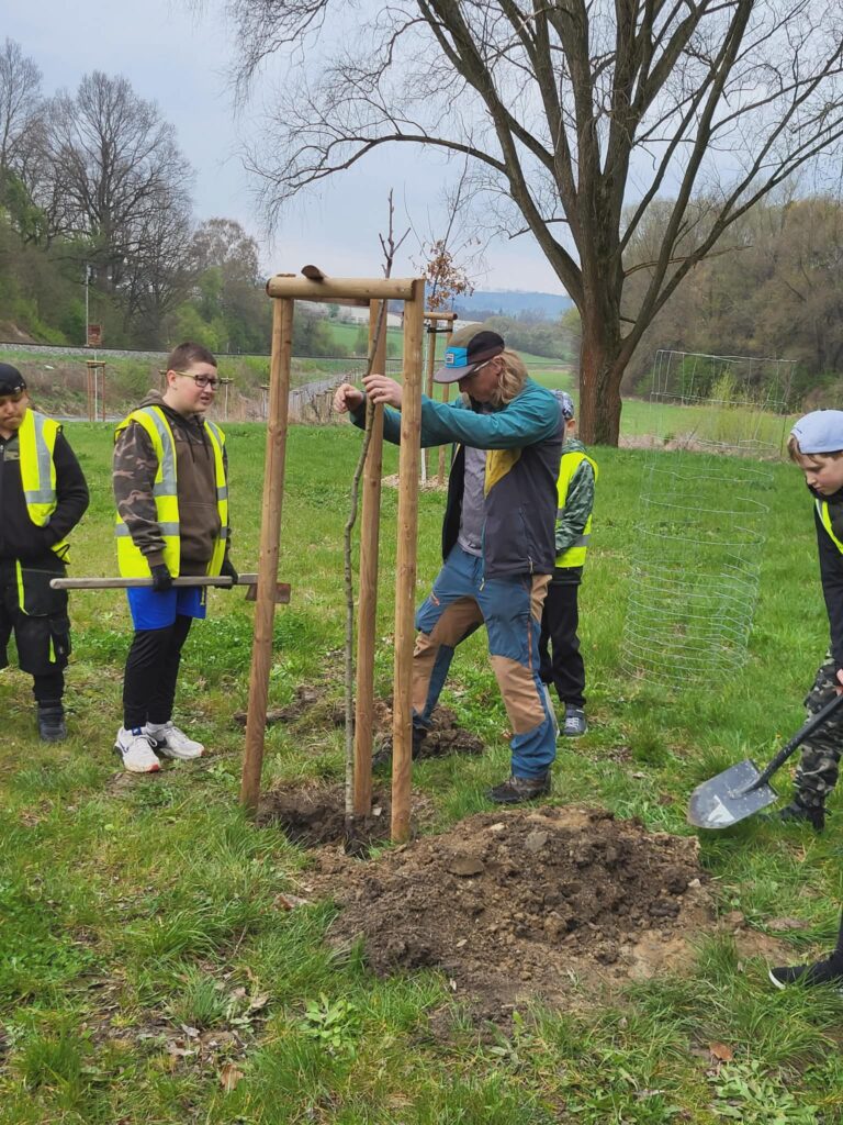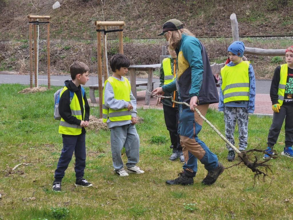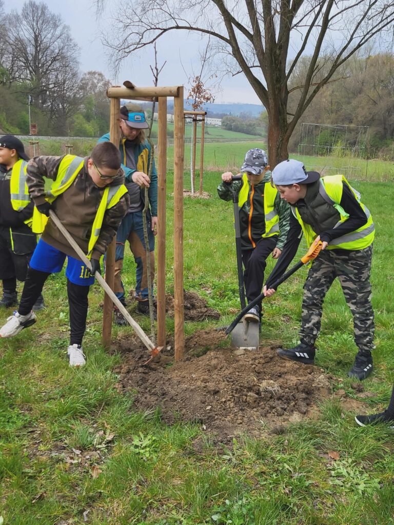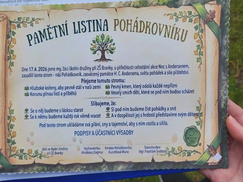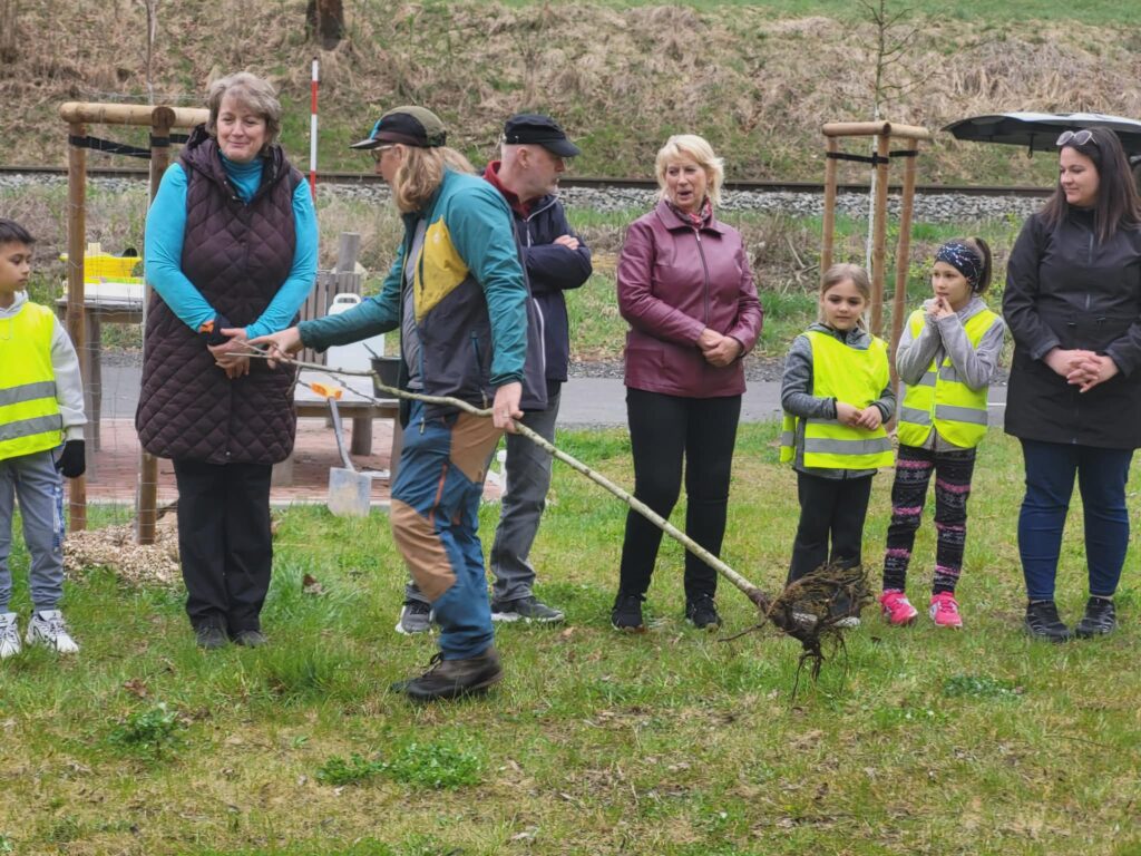 Dnes jsme u cyklistické stezky vysadili strom – třešeň, která se stane naším pohádkovým stromem. K ní budeme vzhlížet a kontrolovat, jak roste, pod ní si budeme číst pohádky a příběhy. Akci zorganizovala paní vychovatelka Dagmar Horáková ze školní družiny a moc se nám líbila. Těšíme se na první příběhy i první plody tohoto stromu.
