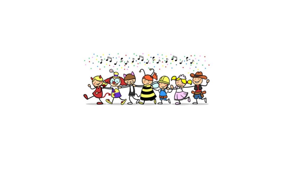 Haló, pane Karnevale, račte dále, račte dále. Elce pelce do pekelce, rolničky a kotrmelce. Máme všechno na míru, z krepového papíru. Abraka dabraka kouzelnice, karkulka, šašek, tanečnice. Všichni vás zvem hej, hej, hej, na maškarní rej!